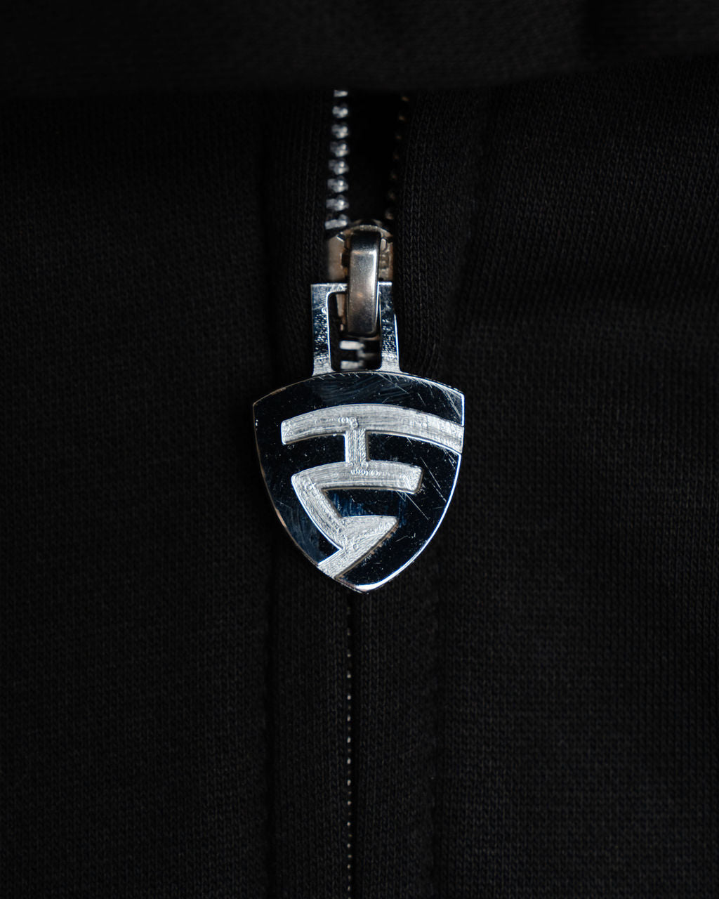 Screen Print/DTF Text/Graphics with Rhinestones and Embroidered Hood Logo